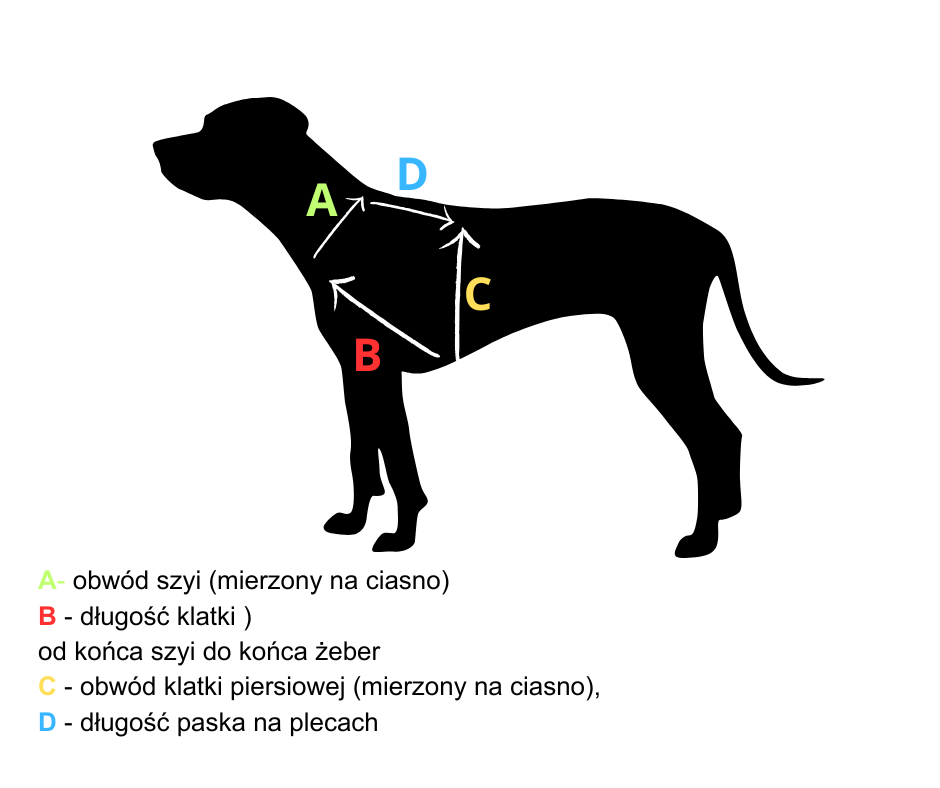 ROZMIAR OBWÓD SZYI OBWÓD KLATKI PIERSIOWEJ OBWÓD OBRĘCZY ZAPIERSIOWEJ PASEK MOSTEK PASEK GRZEBIETOWY PASEK GRZEBIETOWY